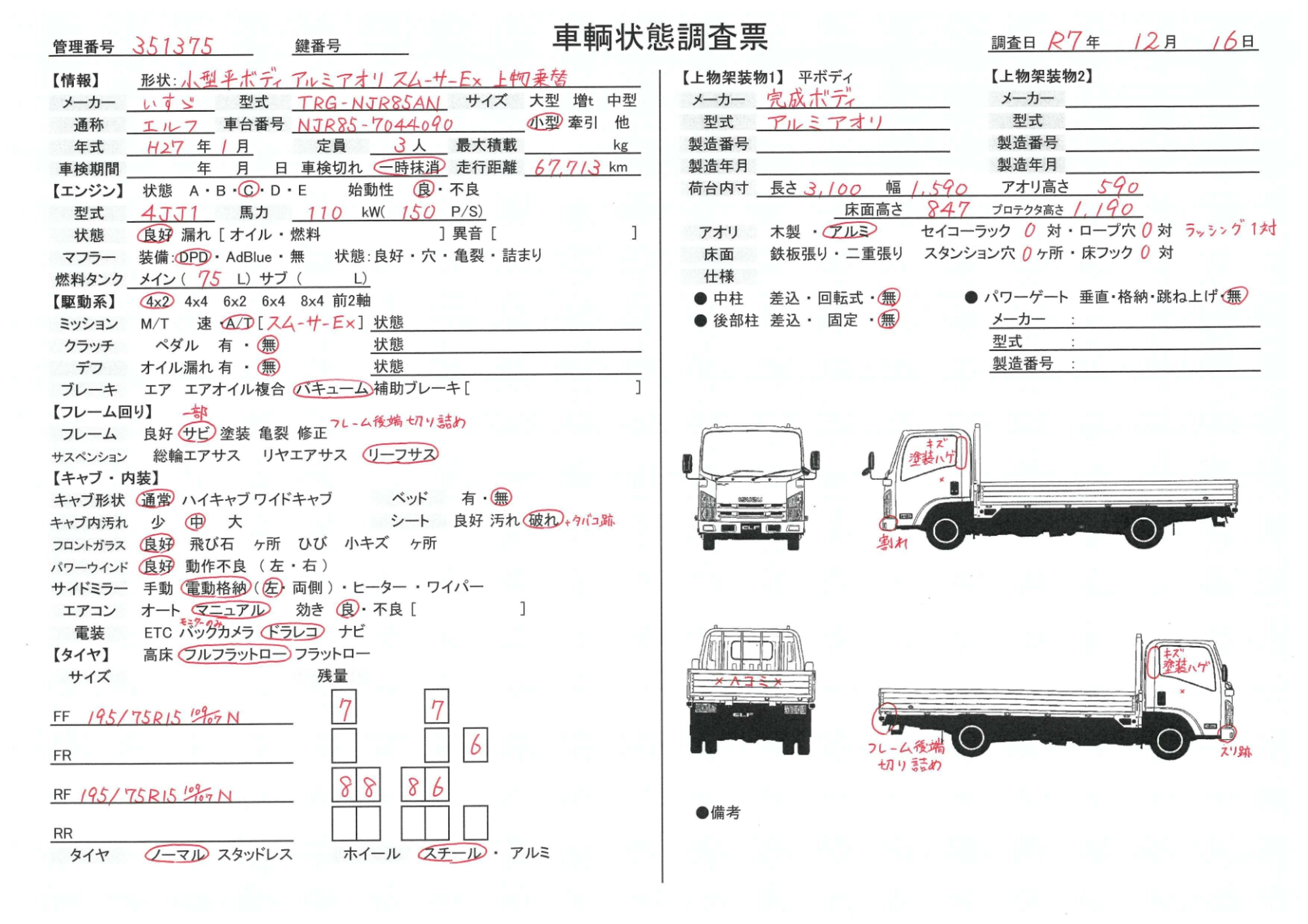 | 上物動作 | 正常 | パワーウィンドウ | 正常 |