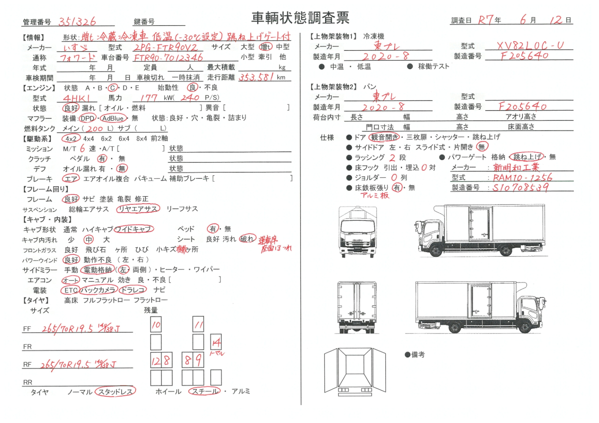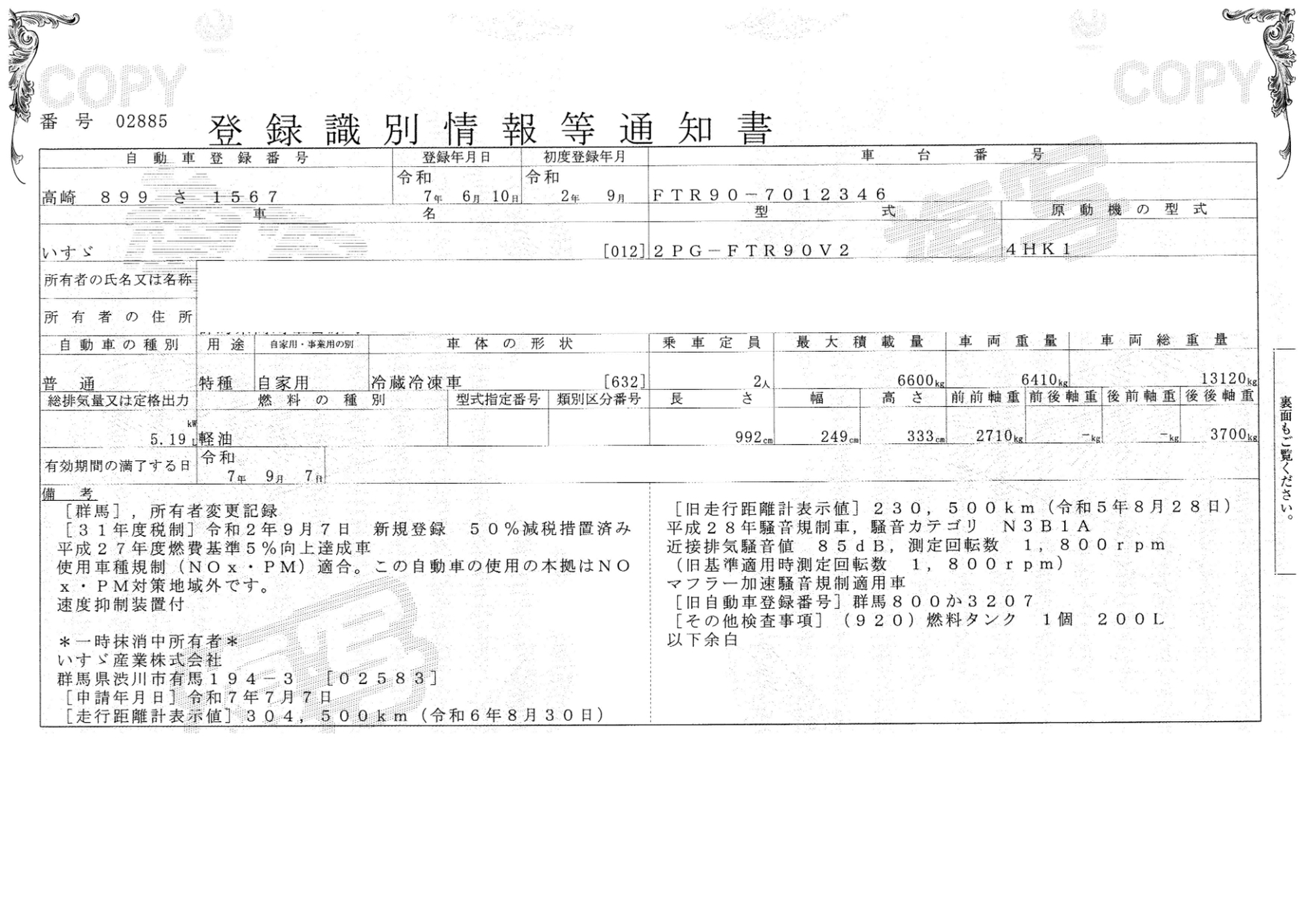 車両型式 | 2PG-FTR90V2 | 車体番号 | FTR90-701**** |