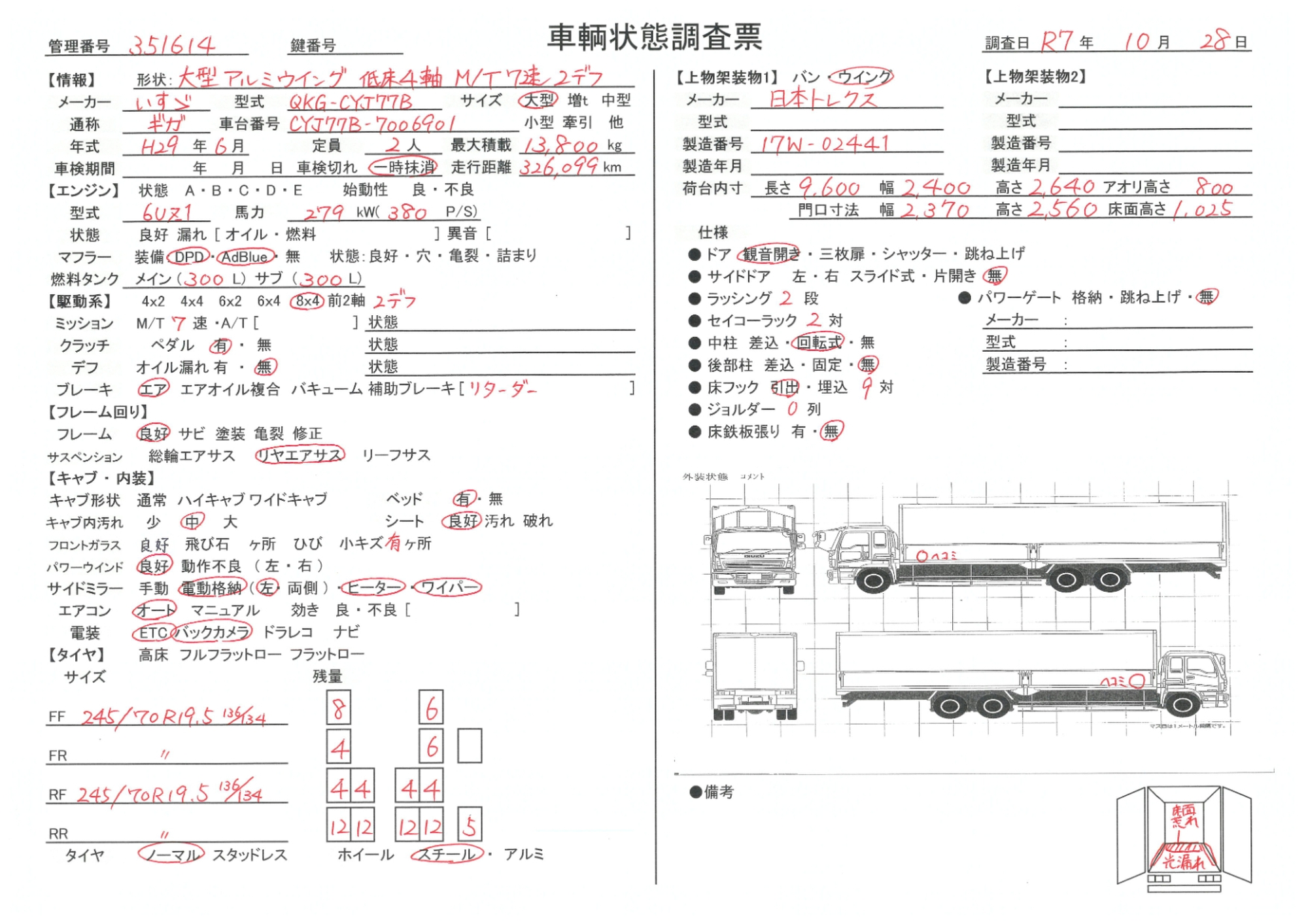 | ボディタイプ | アルミウィング | ブランド | ギガ |
