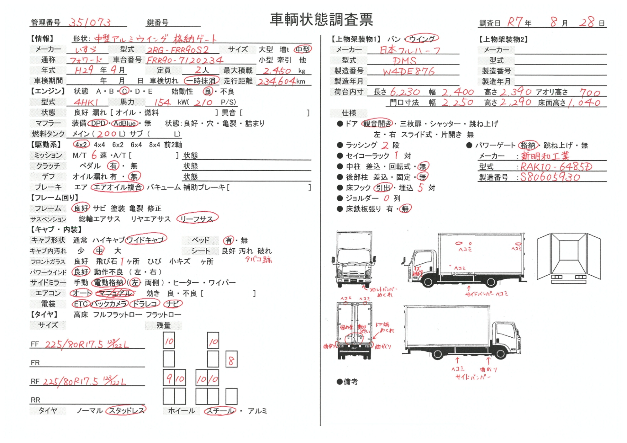 | 上物動作 | 正常 | パワーウィンドウ | 正常 |