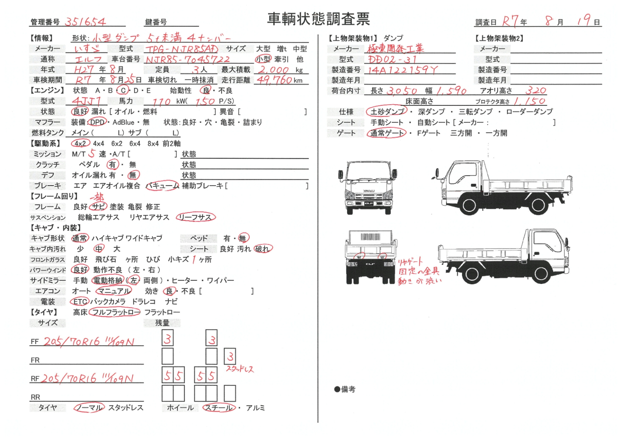 | ボディタイプ | 土砂ダンプ | ブランド | エルフ |