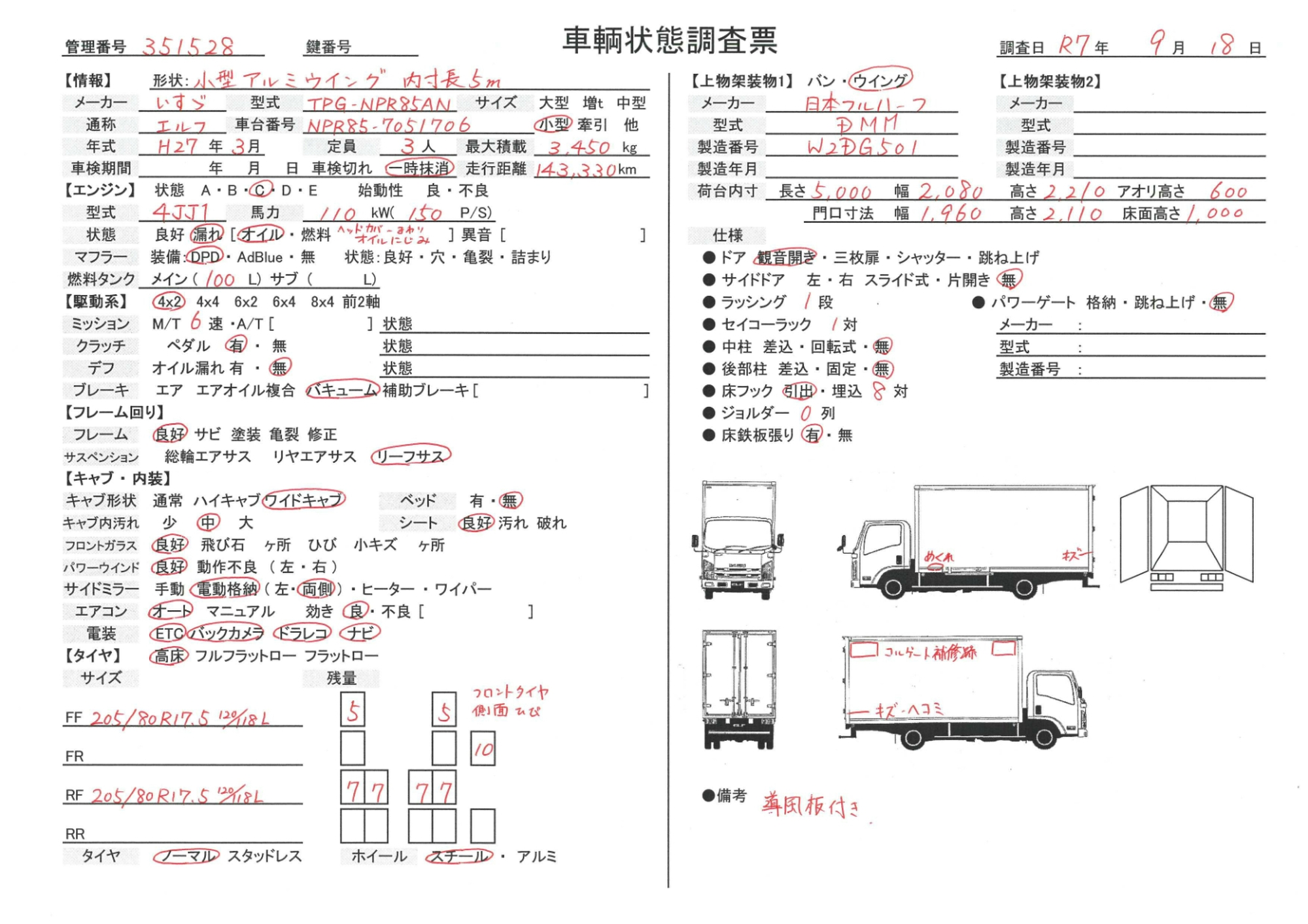 | エンジン | 正常, オイル滲み | ミッション | 正常 |